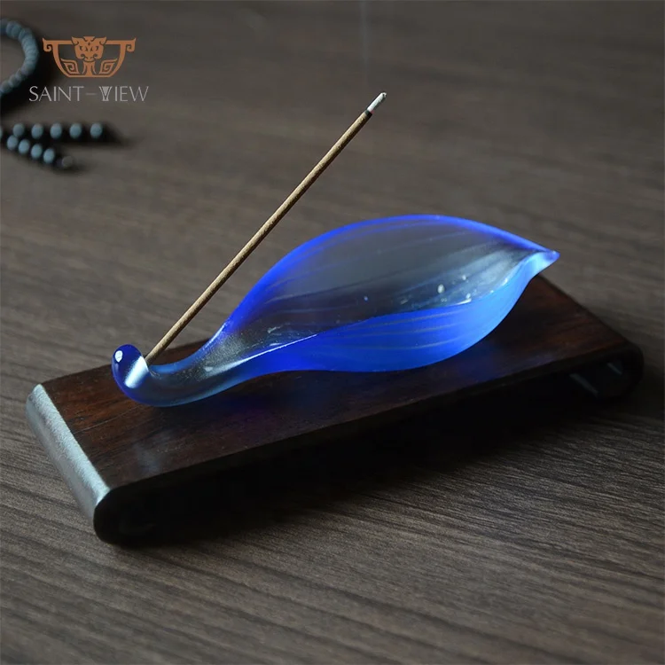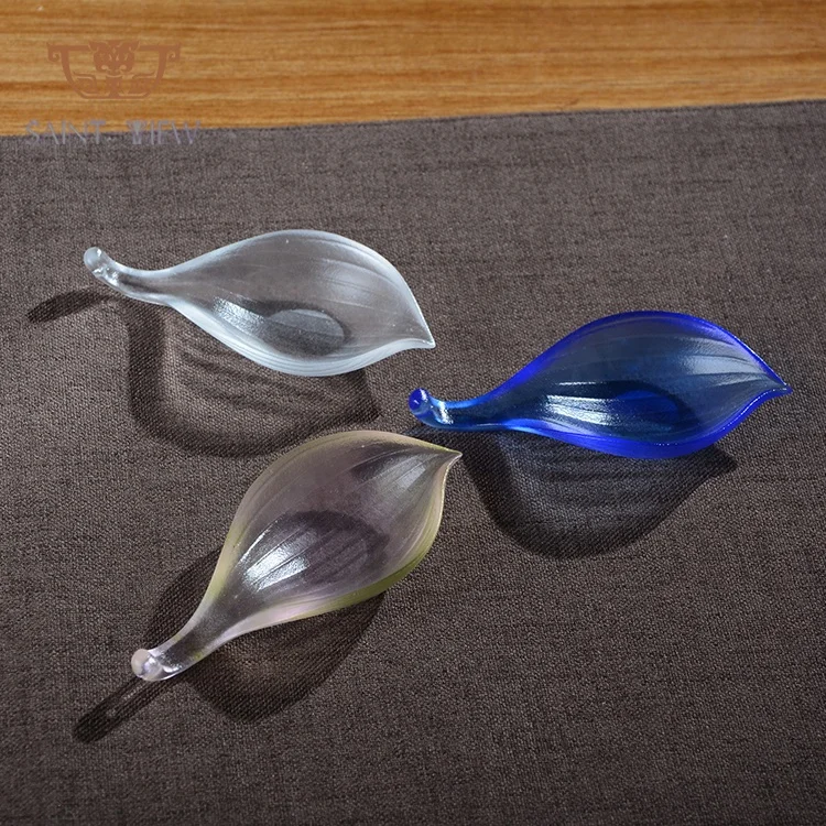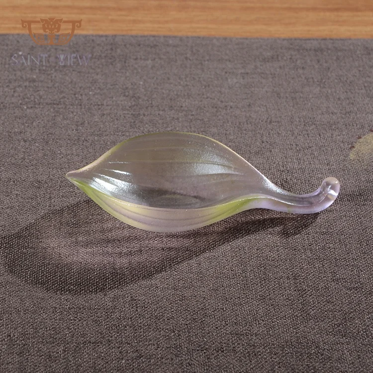 Liuli Crystal Art Lotus Leaf Incense Plate for Tea Table Decorative Accessory